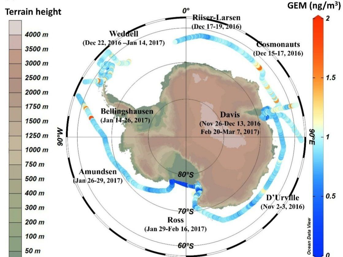 中国科大揭示环南极夏季大气汞亏损现象分布特征及其主导机制
