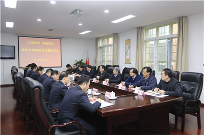 1月16日,安徽江淮汽车集团股份有限公司和中国科学技术大学在我校签署战略合作协议,双方将在协议框架内创新合作机制、拓宽合作领域,进一步加强校企战略合作。