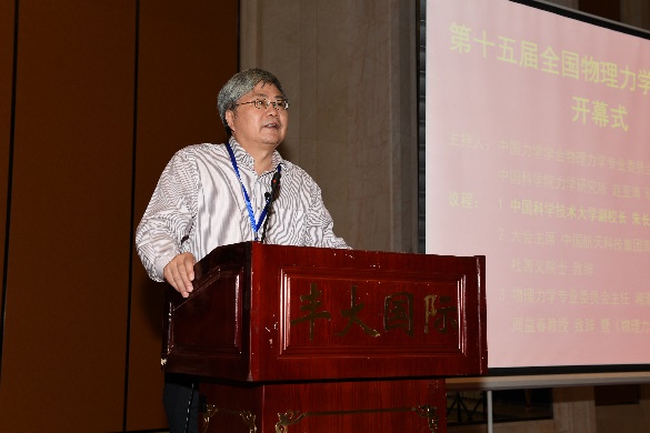 会议开幕式由中国力学学会物理力学专业委员会副主任、中国科学院力学研究所赵亚溥研究员主持。我校副校长朱长飞教授与会致辞,向全体参会人员表示热烈欢迎和衷心感谢。他说,中国科大一直坚持多学科交叉的科研理念和人才培养理念,“物理力学”就是一门典型的交叉学科,由钱学森先生创立,旨在从物质的微观结构和运动规律出发,预测和揭示物质的宏观性质和运动规律。他表示,第十五届全国物理力学学术会议意义重大,全国物理力学的专家齐聚一堂,相互交流,势必推动物理力学的蓬勃发展。