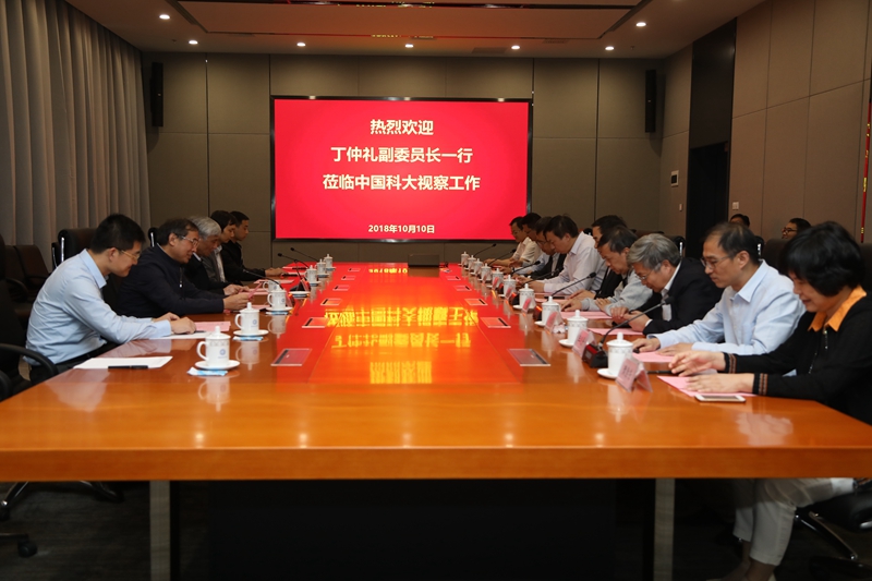 10月10日下午,全国人大常委会副委员长、民盟中央主席、中国科学院副院长丁仲礼来我校调研,中科院有关部门负责人陪同调研。