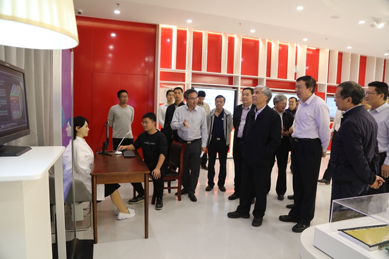 随后,丁仲礼一行前往物质科学楼,参观科教创新成果展。在智医助理、量子科技成果、科大讯飞语音科技等展台前,认真听取研发人员对产品的介绍,并与智医助理医佳进行人机交流,体验讯飞听见产品的语音转录功能。