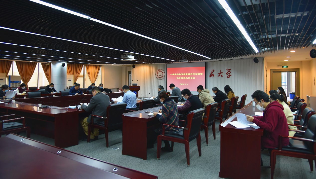 4月3日下午,学校在东区理化大楼一楼科技展厅召开一流本科教育质量提升行动纲领任务落实工作会议。会议由校长助理、教务长周丛照主持,一流本科教育质量提升工作小组成员、相关行政部门负责人及相关院系负责人参加了会议。