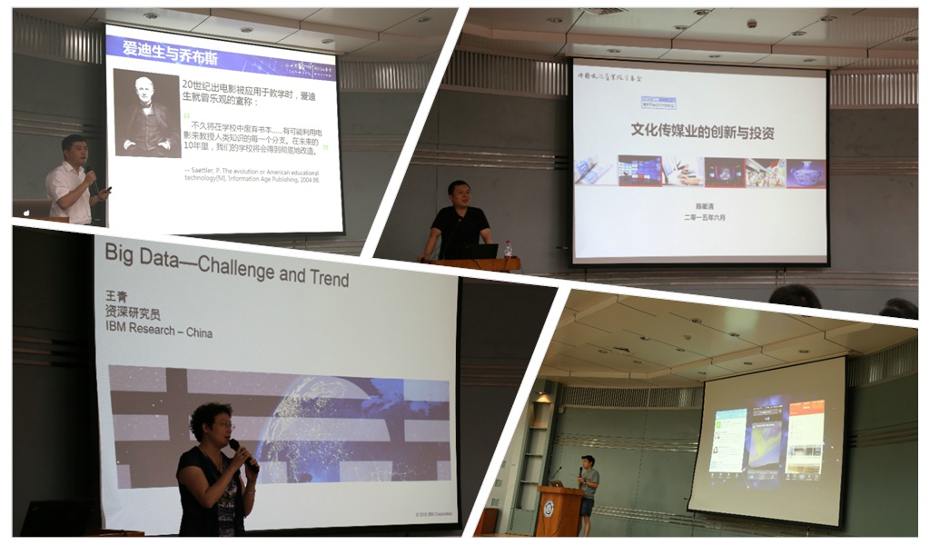 研究生院副院长古继宝教授,作为“设计创新”课程组的教师,“中科院人才计划”入选者、IEEE Fellow李卫平教授,信息与计算机实验教学中心副主任李斌教授,“国家创新人才计划青年项目”入选者陈志波教授出席了本次活动。另外,本次活动特别邀请到了6位创新创业领域的业界嘉宾,分别为中国文化产业投资基金副总裁陈衢清、IBM研究院资深研究员王青、科大讯飞教育产品事业部常务副总经理钟锟、科大讯飞高级产品经理崔海龙、英特尔移动网络与计算联合研究院院长徐树公,以及百度深度学习实验室首席设计师顾嘉唯。