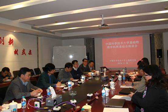11月18日,我校基础物理学科所系结合座谈会在上海研究院举行。潘建伟副校长、物理学院执行院长杜江峰、院党委书记兼副院长叶邦角、中科院上海光学精密机械研究所所长李儒新、上海微系统与信息技术研究所党委副书记兼纪委书记俞跃辉、上海技术物理研究所副所长戴宁、上海应用物理研究所纪委书记李燕以及物理学院、上海研究院相关负责人出席会议。