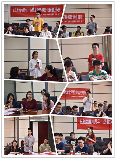 为纪念新中国成立70周年,图书馆志愿服务分队举办“书香伴我行·阅读分享”读书会。2019年6月19日中午,活动在东区图书馆609会议室顺利举行。本次活动由图书馆志愿服务分队的聂明军同学主持,来自学校各个学院不同年级的同学们以及留学生,大家欢聚一堂,共二十余人参加。