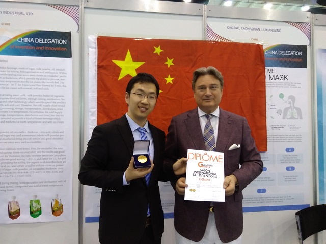 吕松在日内瓦国际发明展获奖留影