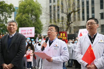4月1日,中国科大附一院(安徽省立医院)第三批、第四批支援湖北医疗队140名队员在合肥定点酒店完成了14天的隔离休养,经核酸检测结果全部为阴性,按期解除隔离,医院为队员们举行了简朴温馨的欢迎仪式。中国科大党委书记舒歌群、校长包信和,附一院党政领导班子成员、医院职能部门负责人、护士长代表等参加欢迎仪式。仪式由中国科大附一院执行院长刘连新主持。附一院党委委员、工会主席储晓红带领医院职能部门负责人前往隔离点迎接队员回家。