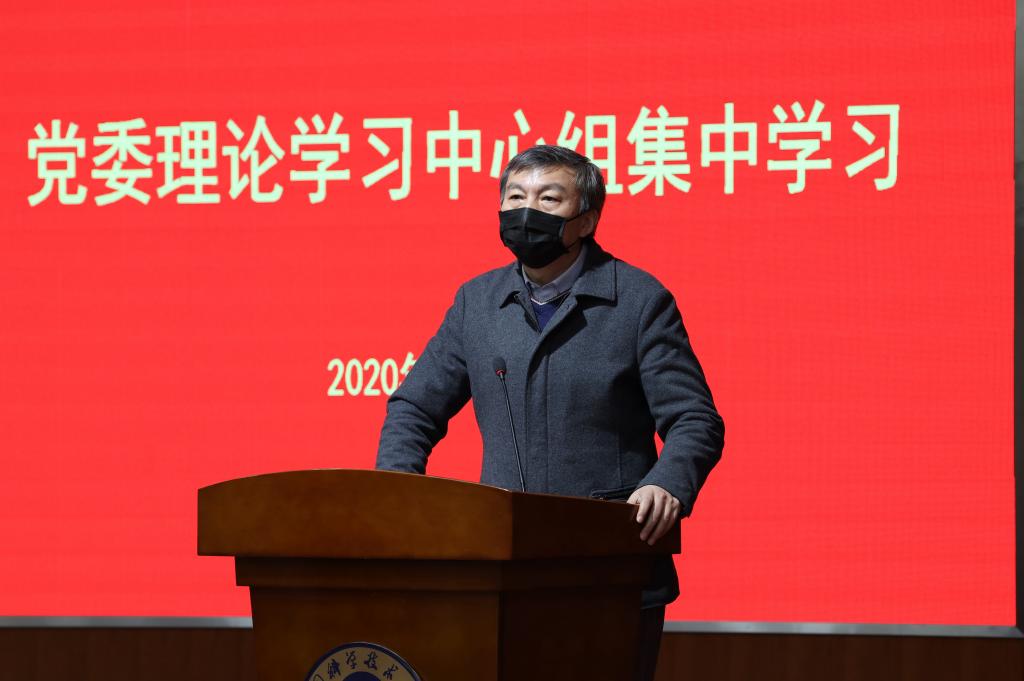 舒歌群指出,以习近平同志为核心的党中央对疫情防控工作高度重视,作出了一系列指示和批示。学校各级党员干部要及时跟进学、联系实际学,切实把思想和行动统一到党中央决策部署上来。要坚持科技服务疫情防控,守牢医院、校园社区两个阵地,在确保疫情防控到位的前提下,保持目标不变、任务不减、干劲不松,复工复产组织有序,脱贫攻坚落实到位,紧密团结在以习近平同志为核心的党中央周围,取得疫情防控的最终胜利。