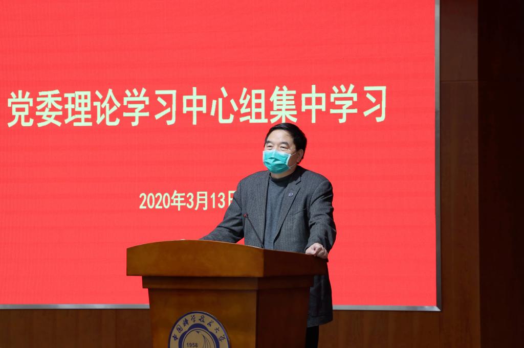 包信和校长分享了学习体会。他指出,疫情发生后,学校坚决贯彻落实习近平总书记关于疫情防控的重要指示精神,把学校的疫情防控工作作为重中之重,确保全校师生员工零感染。中国科大附一院积极组建援鄂医疗队,自1月27日开始先后三批一共154名队员驰援武汉,为抗疫贡献科大力量。同时,学校依托“新医学”显著的基础研究优势,结合附一院临床实践,面向国家需求开展应急科研攻关,取得了系列重要进展。下一步,学校要以更坚定的信心、更精准的举措坚持科技抗疫,严格防控管理,坚决打赢疫情防控阻击战。