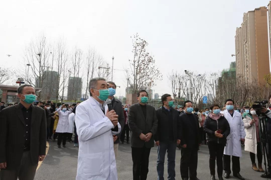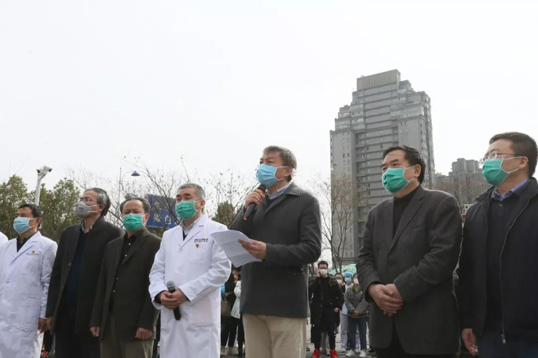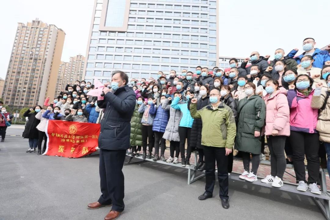 中国科大附一院(安徽省立医院)党委书记刘同柱主持出征仪式,他表示,在短短2个小时内137名医务人员集结完成,充分证明了全院医务工作者的向心力和凝聚力,是“敬佑生命、救死扶伤、甘于奉献、大爱无疆”的医疗卫生职业精神的体现,希望队员们能做好防护、照顾好患者,平安归来!