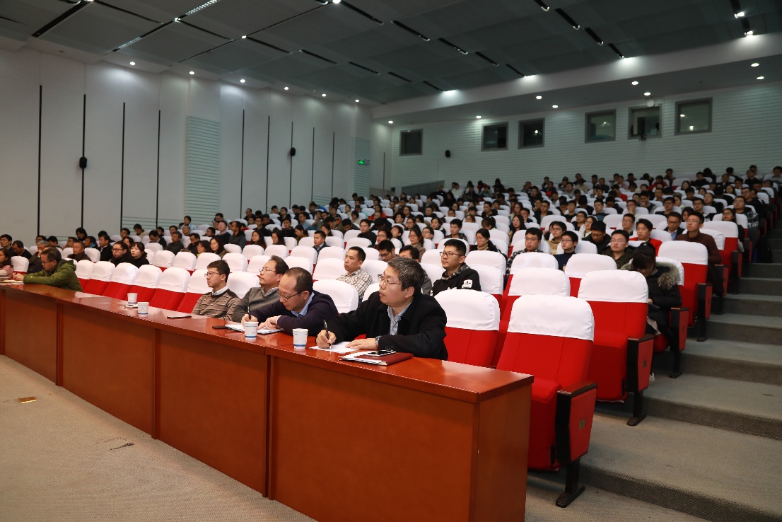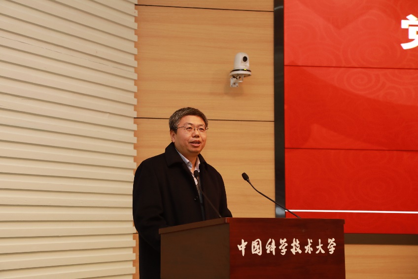 12月17日下午,在东区理化大楼西三报告厅,中国科学技术大学学习贯彻党的十九届四中全会精神宣讲团团长、校党委书记舒歌群以“深入学习贯彻党的十九届四中全会精神”为题,作十九届四中全会精神宣讲。物理学院、化学与材料科学学院师生代表现场聆听了报告,报告会由化学与材料科学学院党委书记兼副院长闫立峰主持。