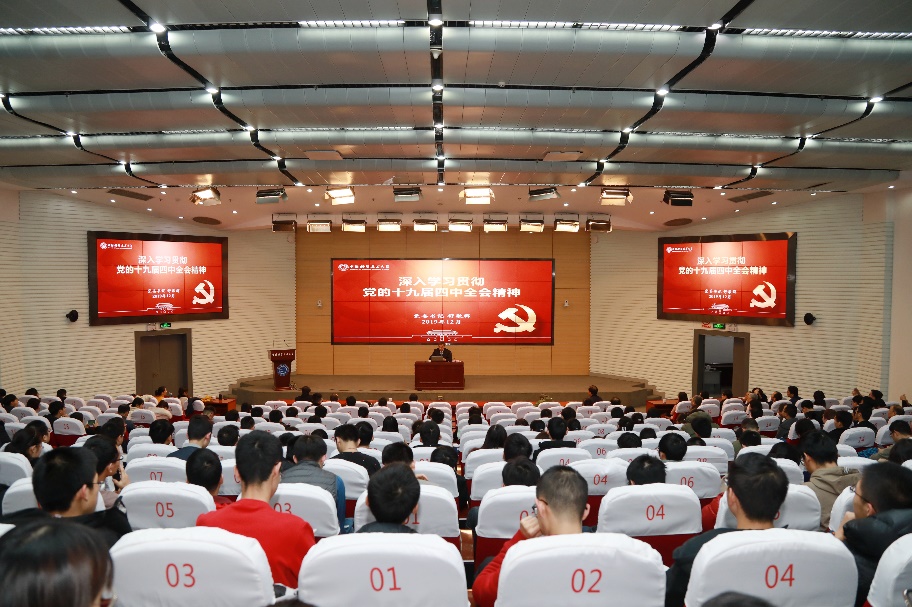 党的十九届四中全会举行以来,校党委高度重视,专门召开两次专题学习会,深入领会十九届四中全会精神,学习贯彻十九届四中全会《决定》。为迅速兴起学习贯彻党的十九届四中全会精神热潮,引导学校广大师生员工把思想和行动统一到全会精神上来,学校成立了中国科学技术大学学习贯彻党的十九届四中全会精神宣讲团。宣讲团团长由校党委书记舒歌群同志担任,成员包括校党委常委、党员校领导以及马克思主义学院骨干教师。宣讲期间,宣讲团成员将分赴有关部门、联系学院或实验室,集中宣讲全会精神。除学校安排的集中宣讲外,各院级党组织也将结合自身实际,组织开展丰富多彩的宣讲活动,确保将全会精神传达到每一位师生员工。