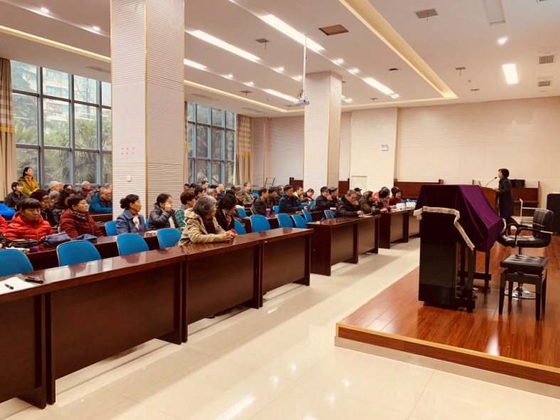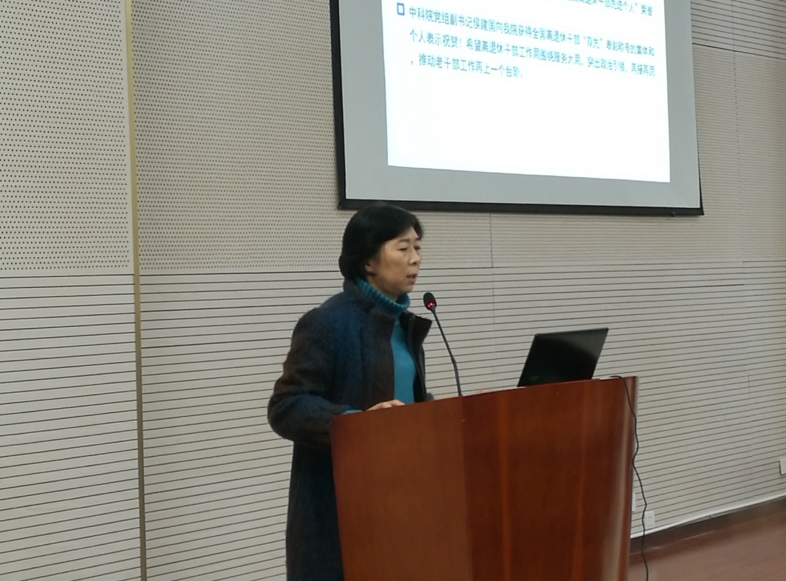 刘艳首先向大家介绍了中国科学院获得全国离退休干部“双先”表彰称号的集体和个人,传达学习全国离退休干部“双先”表彰大会、全国老干部局长会议精神,以及中科院党组副书记侯建国针对院离退休工作提出的希望和下一步具体要求。结合离退休党委下半年开展的“不忘初心、牢记使命”主题教育活动,刘艳从主题教育学习,利用艺术团、老年体协、老年大学、关工委和老科协五大平台开展的各项主题活动,以及“以问题为导向”开展调研整改落实情况三个方面向在座老同志们通报了2019年下半年离退休工作的总体情况,表示离退休党委将继续坚持“深入基层、精准服务、认真务实”的工作作风,用心用情做好老同志的服务管理。刘艳着重介绍了在元旦春节即将来临之际,学校通过离退休困难帮扶基金、学校党委党费、离退休党委返还党费、工会及人力资源部五个渠道共同开展的慰问帮扶困难离退休教职工总体情况,送温暖办实事,表达了学校对大家的关爱和慰问。