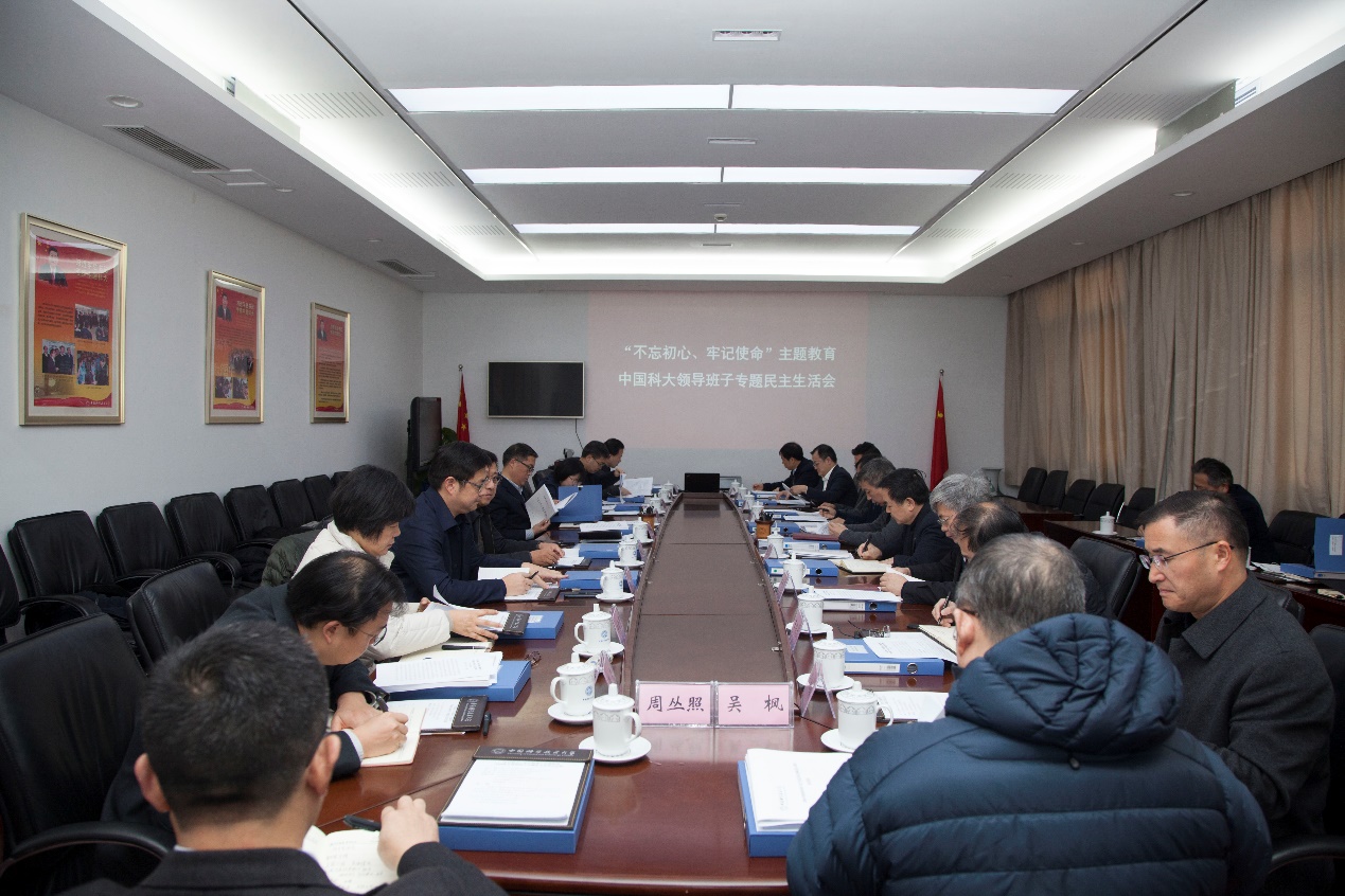 2019年12月6日上午,学校召开“不忘初心、牢记使命”主题教育校领导班子专题民主生活会。中央主题教育第四指导组副组长张国辉,指导组成员杨昊、赵丹,以及中国科学院相关领导到会指导。会议由中国科大“不忘初心、牢记使命”主题教育领导小组组长、党委书记舒歌群主持。