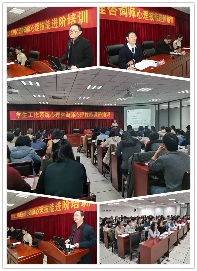 为进一步贯彻落实中共中央、国务院《关于加强和改进新形势下高校思想政治工作的意见》以及教育部《关于普通高等学校学生心理健康教育工作基本建设标准(试行)的通知》精神,持续提升我校学工系统心理工作技能,增强对学生心理问题的疏导和干预能力,助力大学生健康成长成才,12月5日,我校学生工作系统心理咨询师心理技能第四次进阶培训在新图书馆四楼学术报告厅举行,来自全校各院系、直属单位、中国科学院金属研究所、紫金山天文台、苏州纳米所学生工作教育处近100人参加了为期两天的专业技能培训。开幕式由学生工作处副处长刘伟丰主持。