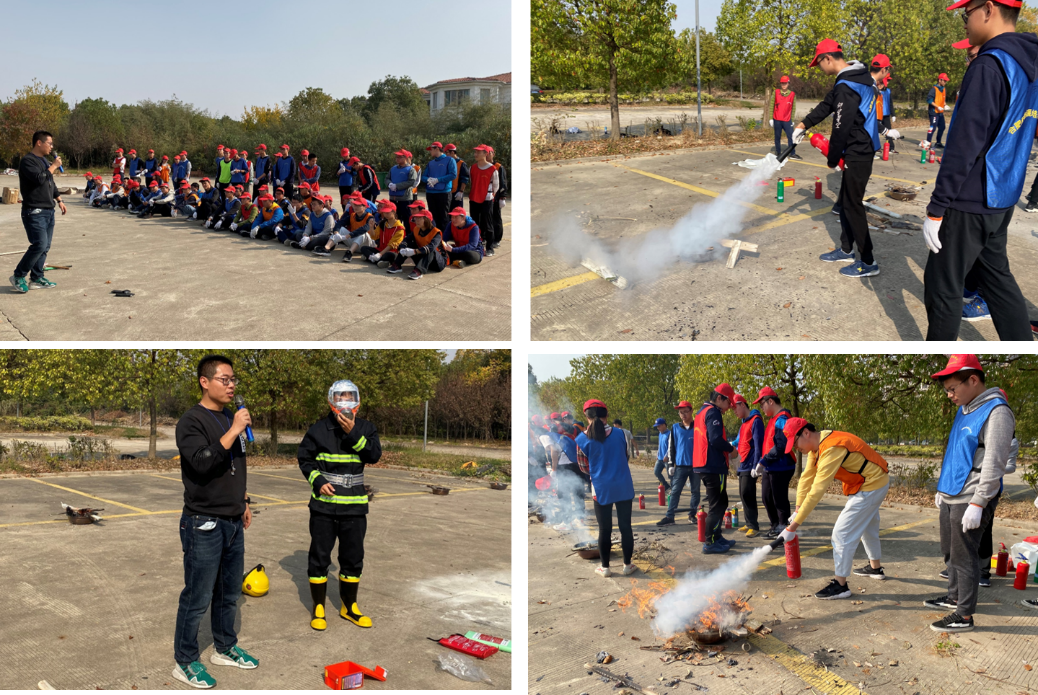 随后,学生工作部处刘暄老师讲解了干粉灭火器、水基灭火器和二氧化碳灭火器的灭火原理、操作技巧、注意事项,并使用各种灭火器进行灭火演示。