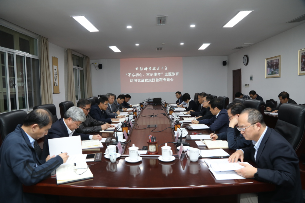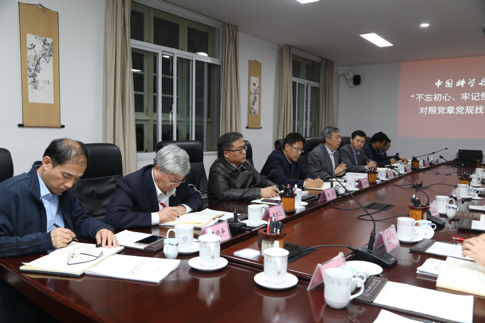 10月25日下午,学校在218楼三楼会议室召开“不忘初心、牢记使命”主题教育对照党章党规找差距专题会议。中央第四指导组成员到会指导,在校校领导参加了会议。会议由校党委书记舒歌群主持。
