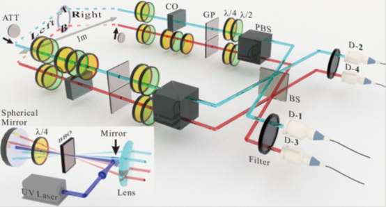 李传锋研究组继首次实现非局域可观测量的量子测量[Phys. Rev. Lett. 122, 100405 (2019)]后,与斯德哥尔摩大学Yaron Kedem博士一起另辟蹊径,通过巧妙构造哈密顿量,实现对多体系统局域可观测量之和的模量(Modular Value)的测量,然后利用它与非局域可观测量的弱值的数学关系,直接给出后者的取值。该方法成功解决了提取多体系统非局域可观测量的弱值这一难题,可以很方便地应用到多体非局域波函数的测量中。研究组在实验上利用双光子超纠缠成功演示了双光子非局域波函数的直接测量。他们将两个光子制备到偏振和路径分别处于最大纠缠态的超纠缠态上,再实现偏振和路径间的相互作用,最后通过路径指针在不同投影基下的计数直接测量出双光子偏振态的波函数。