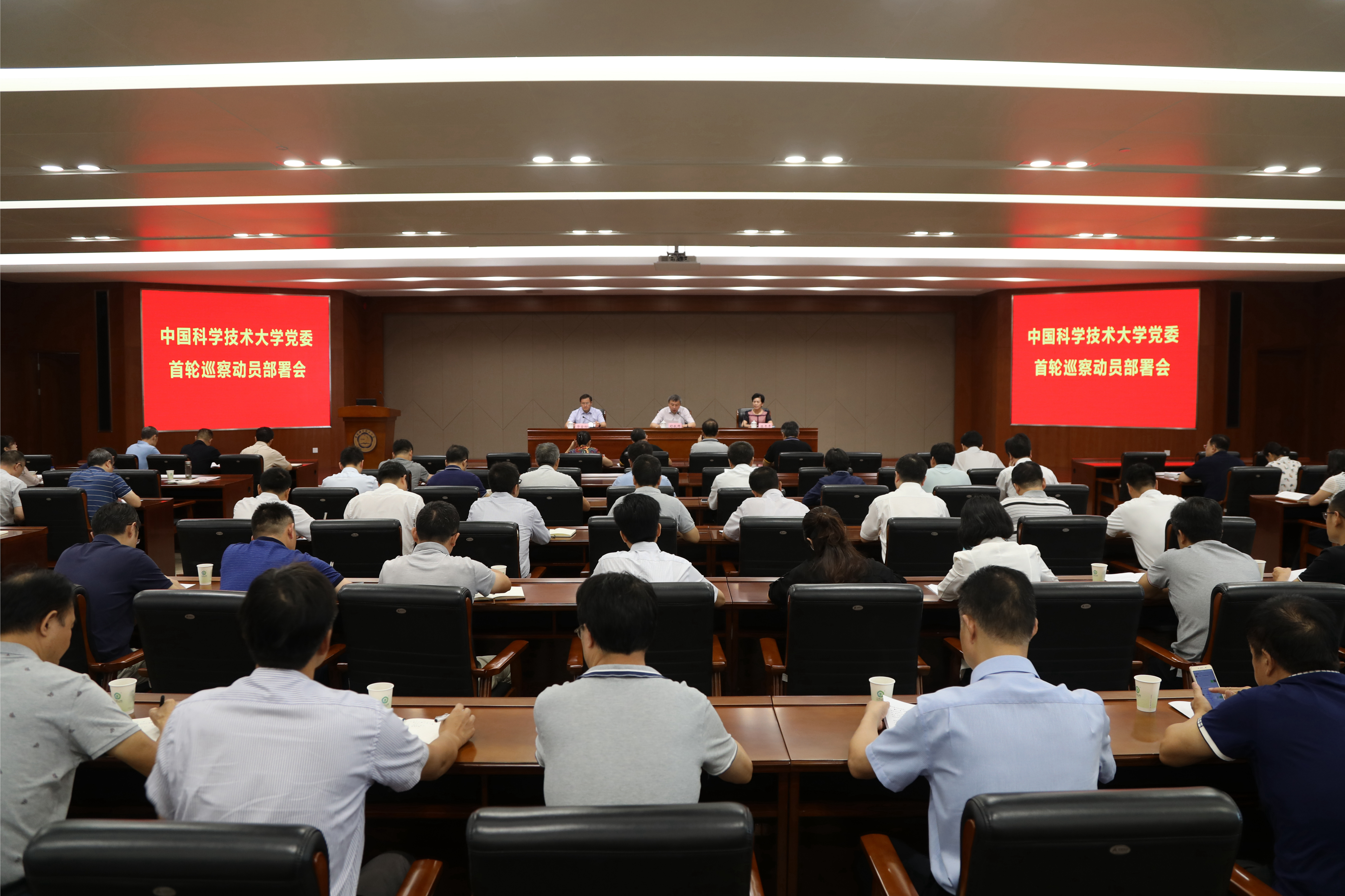9月18日上午,中国科学技术大学党委首轮巡察工作动员部署会召开。校党委巡察工作领导小组组长、党委书记舒歌群出席会议并做动员讲话。中国科学院党组巡视工作领导小组成员、监督与审计局局长兼巡视办主任杨卫平书面致辞。中科院党组巡视组原巡视专员(巡视组组长)陈平平应邀作专题报告。会议由校党委巡察工作领导小组副组长、党委副书记、纪委书记毕金初主持。校党委巡察工作领导小组成员,巡察组全体成员,机关各部处室、各学院、重点科研机构、直属单位党政主要负责人,首轮被巡察单位领导班子全体成员参加会议。