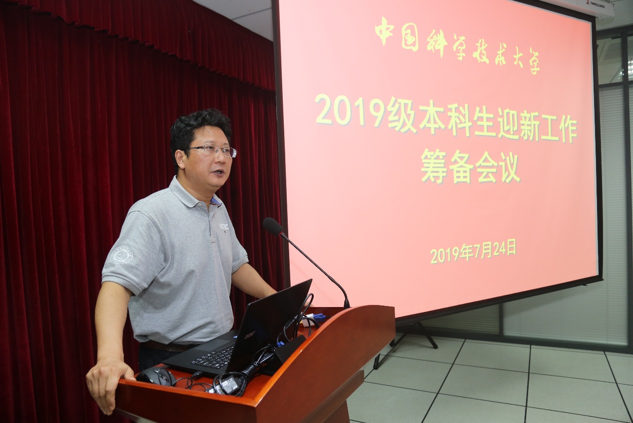 蒋一代表学校欢迎和感谢新的辅导员班主任老师加入到学生工作队伍中来,他强调迎新工作是大学立德树人主体工作的起点,是三全育人、传承科大红专并进精神的重要环节,希望大家全力投入本科新生迎新工作,加强思想政治引领,为整个本科教育开个好头。