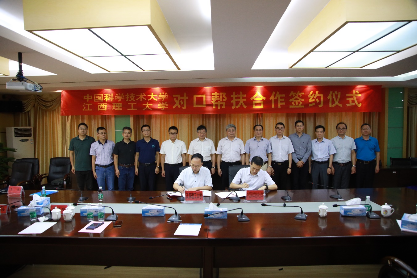 罗喜胜、杨斌分别代表两校签订《中国科学技术大学 江西理工大学对口帮扶合作协议》。