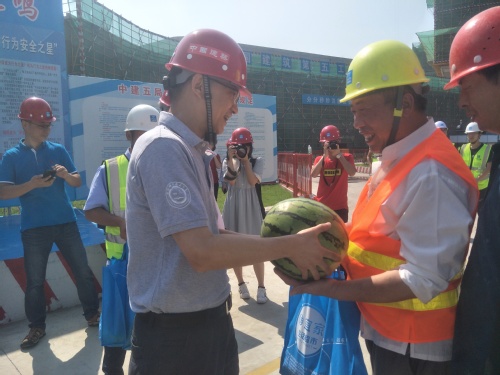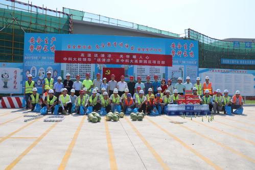 朱长飞、王晓平一行先后赴中国科大高新园区和量子创新研究院施工现场,看望一线施工人员,感谢他们为项目建设作出的贡献,并送上了防暑降温慰问品。同时叮嘱各施工单位要深入细致地做好防暑降温工作,合理安排作息时间,避开高温时段进行户外作业,准备好降温防暑物资,采取有力措施,做好高温防护工作,确保一线作业人员人身安全和健康。
