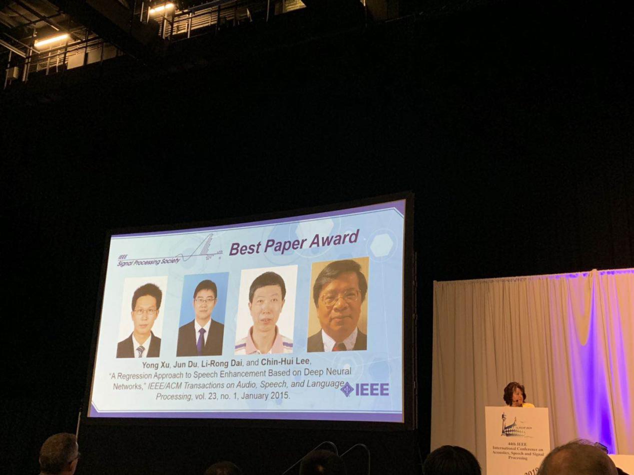 近日,在英国布莱顿举行的IEEE声学、语音及信号处理会议(ICASSP)上,中国科学技术大学语音及语言信息处理国家工程实验室智能语音团队获得2018年IEEE信号处理学会最佳论文奖。