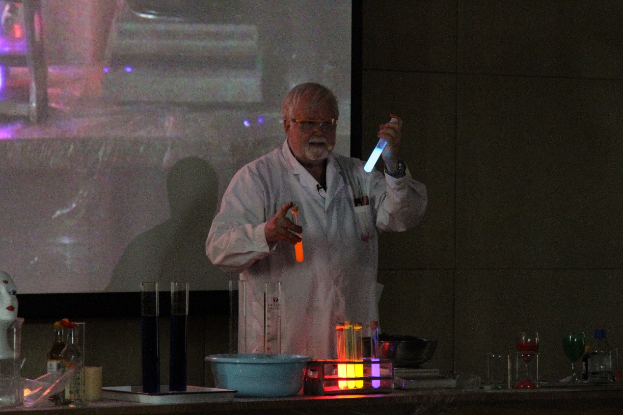 5月18日,英国皇家化学会北京地区分会主席、知名科普专家戴伟教授再次来到科大,在环资楼报告厅举办化学秀。在这场秀中,我们看到了徒手点燃钢丝绒,冰沙燃烧的“魔法”,了解了停电的时候灯泡发光、头像瞬间不翼而飞的“秘密”,让《流浪地球》中扣人心弦结局成为现实。这些难以想象的现象都可以通过化学的方法得以实现。本次科学秀通过丰富多彩的化学实验来揭示什么是化学反应,告诉大家化学不仅限于烧杯和实验室,它就在我们身边。