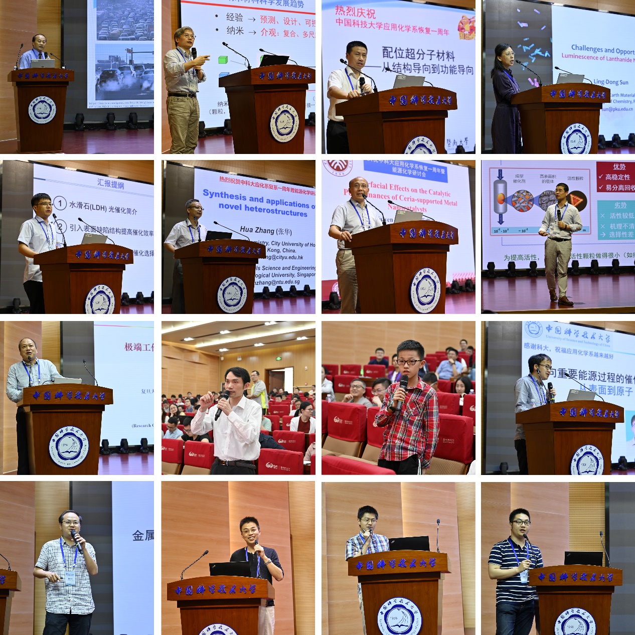 研讨会涵盖了电化学能源、太阳能转换及发光、催化化学转化等能源化学领域,张久俊、胡征、李丹、孙聆东、张铁锐、张华、张亚文、郑南峰、夏永姚等9位著名专家学者先后做主题报告,表达了对应用化学系的美好祝福和期盼,介绍了自己的研究进展。专家们的报告或风趣幽默、引人入胜,或结合实践、形象生动。与会者就报告内容对能源化学领域的诸多科学问题进行了探讨,现场气氛活跃、学术氛围浓厚。会议当天恰逢我校科技活动周,不少合肥市民儿童也参与了此场科学盛宴,并进行了部分现场交流。会上,应用化学系青年教师代表吴宇恩、姚宏斌、季恒星、张晓东、洪勋也汇报了自己的科研进展。