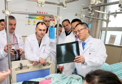 为响应国家“一带一路”倡议,加强国际学术交流,4月22日至23日,中国科大附一院国际关节研修班2019“一带一路”国际骨科学术交流会举办。“一带一路”沿线国家多米尼加、缅甸、乌克兰、波兰的11家医院的16位优秀关节外科医生来院进行学术交流。医院通过理论授课、病例讨论及手术演示等多种形式,促进来华医生提升相应专业技术能力。