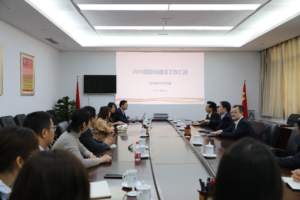 国际合作与交流部部长侯中怀介绍了我校国际合作交流现状,分析了我校国际化发展过程中存在的问题,以及与其他国际一流大学和兄弟高校之间存在的差距,并汇报了2019年国际合作与交流部的工作计划和进度。