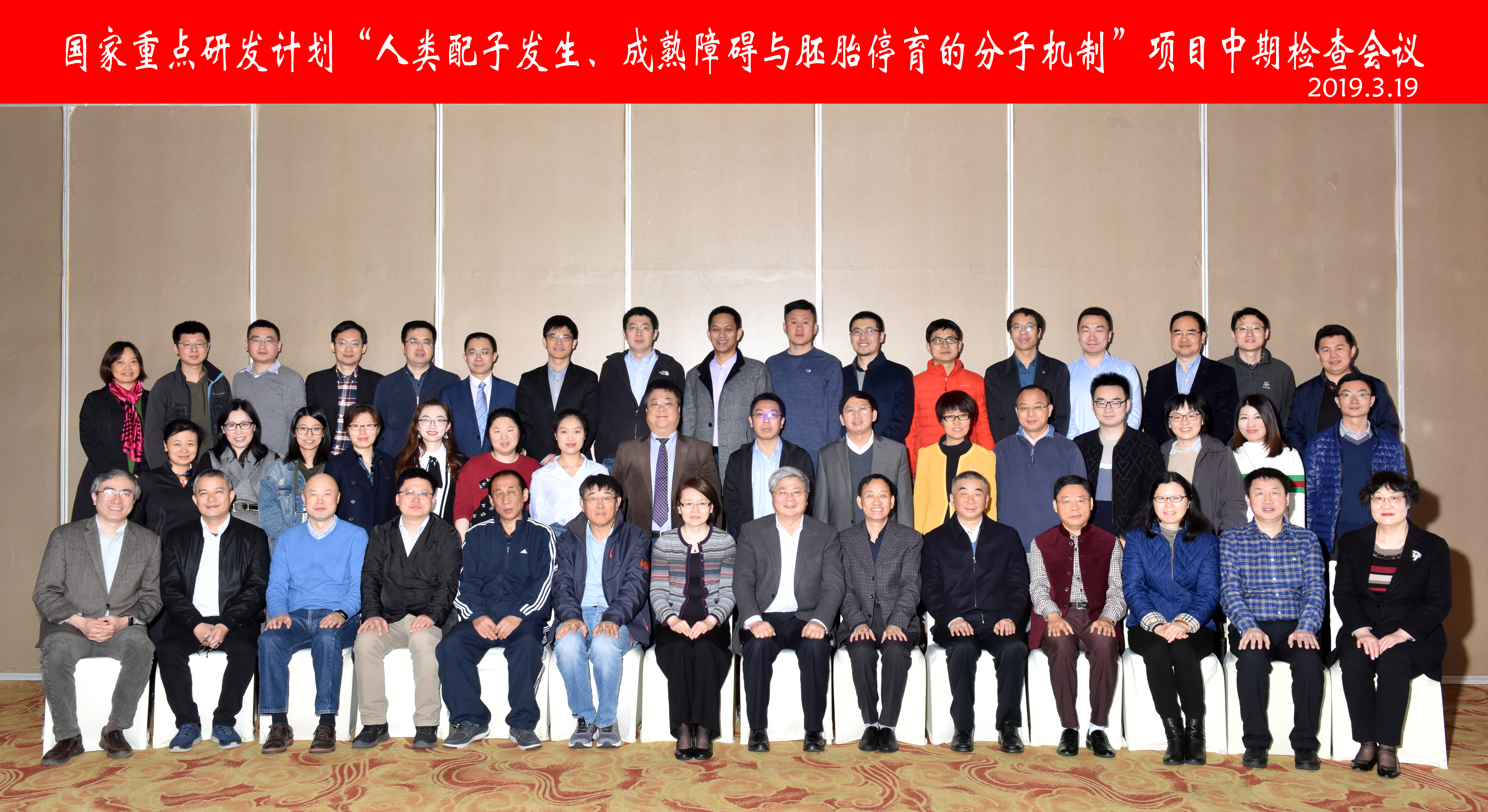 我校史庆华教授主持的国家重点研发计划“人类配子发生、成熟障碍与胚胎停育的分子机制”项目中期检查会议3月19日在合肥召开。中科院动物所段恩奎研究员、南京医科大学胡志斌教授、中科院上海生化所李劲松研究员、中国农业大学夏国良教授、南京大学李朝军教授、浙江大学朱依敏教授和中国医学科学院王言平会计师担任中期检查专家组专家。国家卫生健康委医药卫生科技发展研究中心副主任贺晓慧、专员朝呼和,中国科大副校长朱长飞、中国科大生命科学与医学部和附属第一医院党委书记刘同柱,中国科大生命科学与医学部执行部长、生命学院执行院长薛天以及项目骨干、科研管理人员出席了中期检查会。