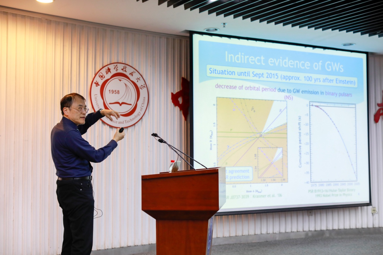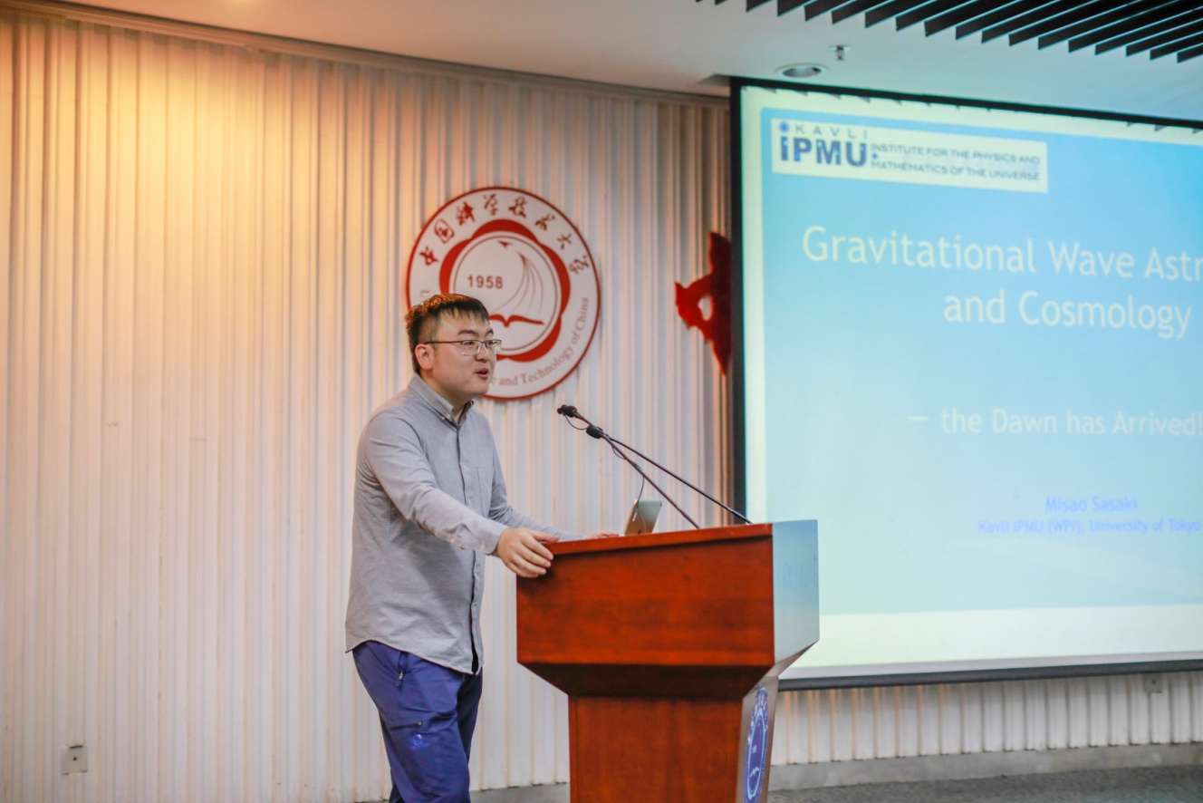 报告中,佐佐木节教授首先通过与生活中其它波动现象进行类比,指明了引力波是时空的涟漪以及可以穿透宇宙中任何物质的特性。随后,佐佐木节教授介绍了引力波来源之一的双星合并事件,并回顾了引力波的探测历史与发现事件,其中还包括了对现阶段已经运行或正在建设的引力波天文台LIGO,VIRGO,KAGRA等的介绍。在这之后,佐佐木教授着重介绍了双中子星合并事件GW170817,指出了这一事件同时具有引力波信号与电磁信号的重要特征,以及在检测引力波传播速度与光速的偏离方面所具有的重要意义。