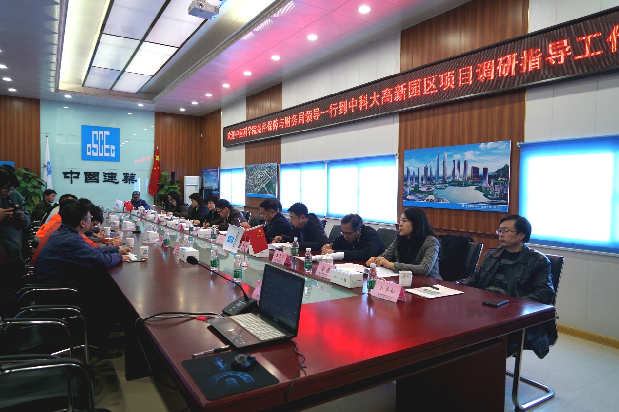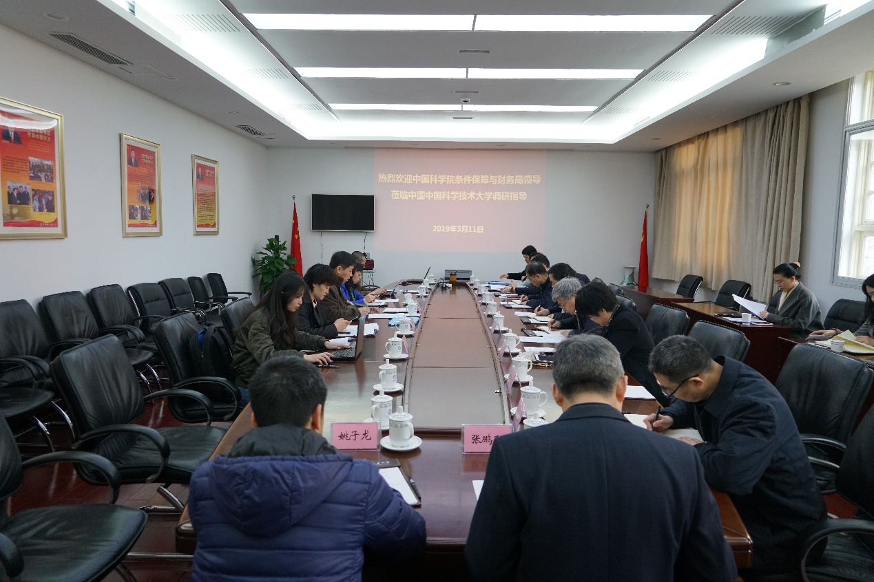 3月11日,中国科学院条件保障与财务局局长郑晓年、副局长高军和相关处室负责人一行5人调研中国科大,听取学校工作汇报,调研园区项目建设。校长包信和,校党委常委、副校长朱长飞、王晓平,总会计师黄素芳,以及国家同步辐射实验室、党政办公室、发展和改革办公室、科研部、财务处、资产与后勤保障处、基本建设处等部门负责同志参加了座谈和调研。