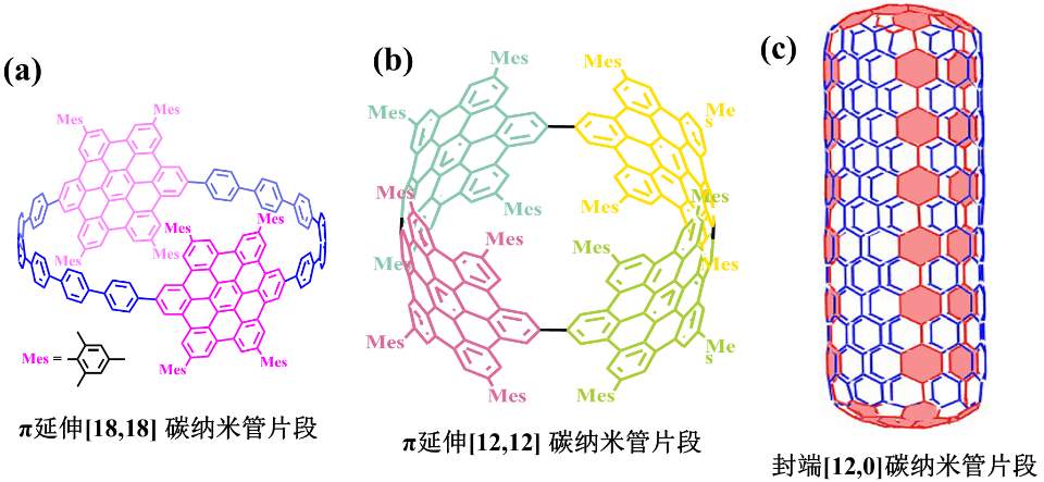 图1.杜平武教授课题组报道的多种大共轭碳纳米管片段的结构