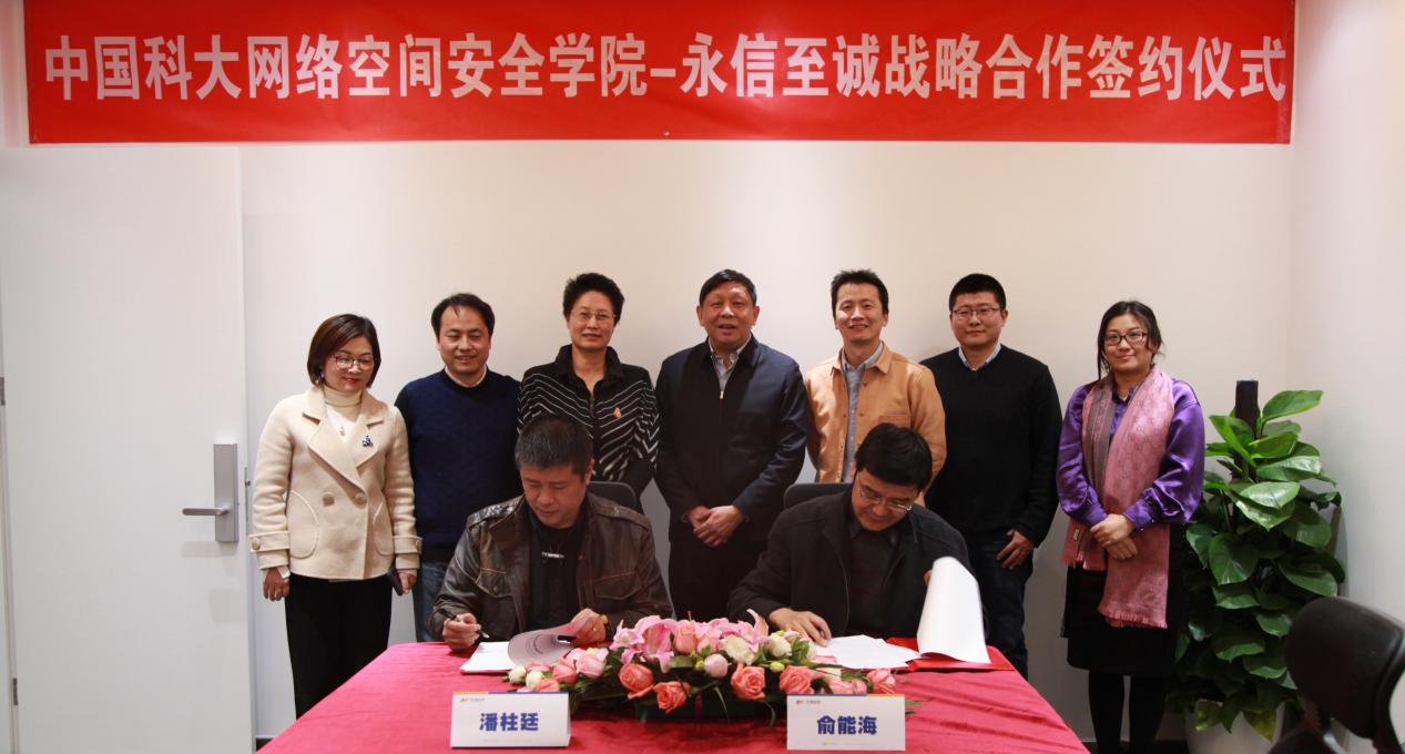 2018年12月28日,中国科学技术大学(以下简称“中国科大”)网络空间安全学院与北京永信至诚科技股份有限公司(以下简称“永信至诚”)战略合作签约仪式在北京举行。围绕国家网络空间安全战略性需求,双方将在建设网络安全拔尖人才培养联合实验室、联合建设网络空间安全学科、联合承担国家重大项目、联合筹办网络安全大赛等方面展开合作,打造产学研合作示范高地,推动国家网络安全事业的发展。