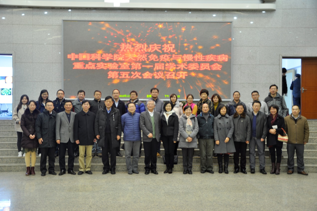 2018年12月26日,中科院天然免疫与慢性疾病重点实验室第一届学术委员会第五次会议在中国科大生命科学学院召开。重点实验室学术委员会委员苏州大学时玉舫教授、中科院上海生化细胞所孙兵教授、清华大学吴励教授、中科院生物物理所范祖森研究员、中国科大吴缅教授,特邀专家香港中文大学于君教授、中国科大附属第一医院刘连新教授、山东大学高成江教授、中科院上海生化细胞所王红艳研究员、苏州系统医学研究所马瑜婷研究员,中国科大科研部朱霁平副部长、中国科大生医部常务副书记魏海明教授、重点实验室主任田志刚院士和实验室部分成员50余人参加会议,会议由时玉舫教授主持。