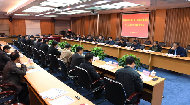 11月28日,校党委书记舒歌群一行赴我校对口支援高校——西南科技大学调研,西南科大党委书记陈永灿、校长董发勤出席座谈会。学校相关单位负责人、有关学院教授陪同调研。