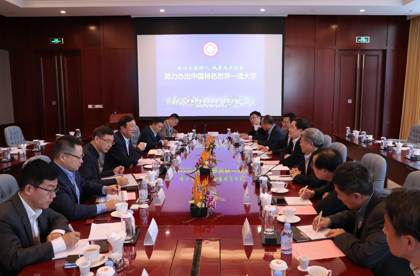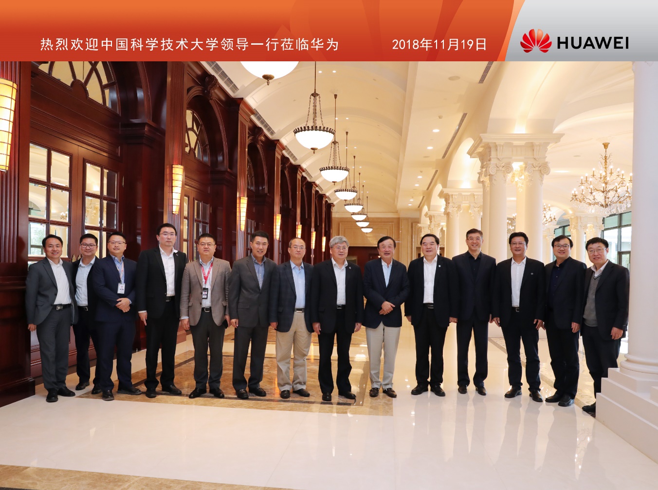 11月19日,校长包信和,党委常委、副校长朱长飞,党委副书记蒋一等一行赴深圳华为公司调研,华为公司CEO任正非等参加座谈会。党政办公室、科研部、信息科学技术学院、计算机科学与技术学院、大数据学院、网络安全空间学院、中国科学院量子信息与量子科技创新研究院等单位负责人和相关教授陪同调研。