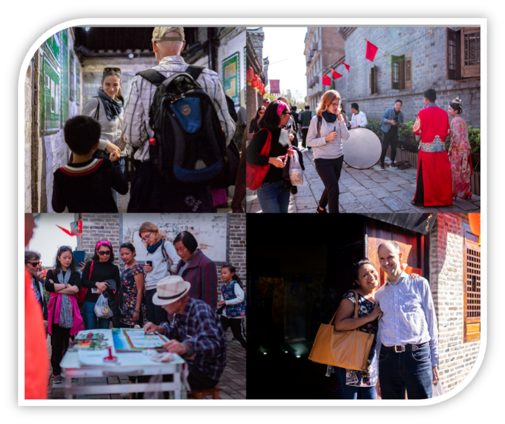 离开安徽名人馆,全体师生前往长临河古镇。外籍教师参观了极具安徽特色的古镇小巷,品尝巢湖菱角、手工制糖等,并与当地村民合影留念。偶遇身着中式婚礼礼服的新人,观看手工个性签名作画,以及淳朴的民风、好客的村民,让外籍教师耳目一新、倍感兴趣。他们的到来也给小镇带来一道别样风景。