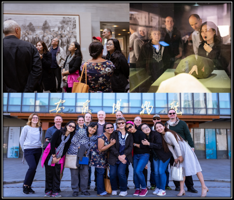 参观完长临河古镇,全体师生来到本次活动的最后一站安徽省博物院。大家参观了安徽文明史陈列部分展厅,从史前时期的安徽到明清时期的安徽。英文讲解员精湛的讲解让外籍教师们从诸多方面了解到安徽的文明历史,尤其对安徽皖南的徽派建筑赞不绝口。