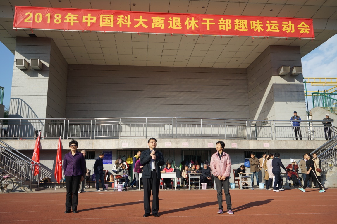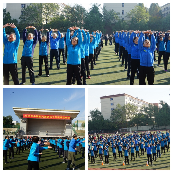 11月2日上午9点,由离退办、老年体协主办的2018年度离退休干部庆校庆趣味运动会暨健身气功展演在东区田径场开幕。校离退委委员、组织部长何淳宽,校离退委委员、工会常务副主席史明瑛,以及近1000名离退休老师参加开幕式。