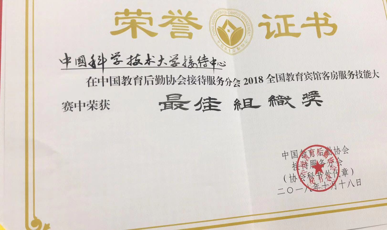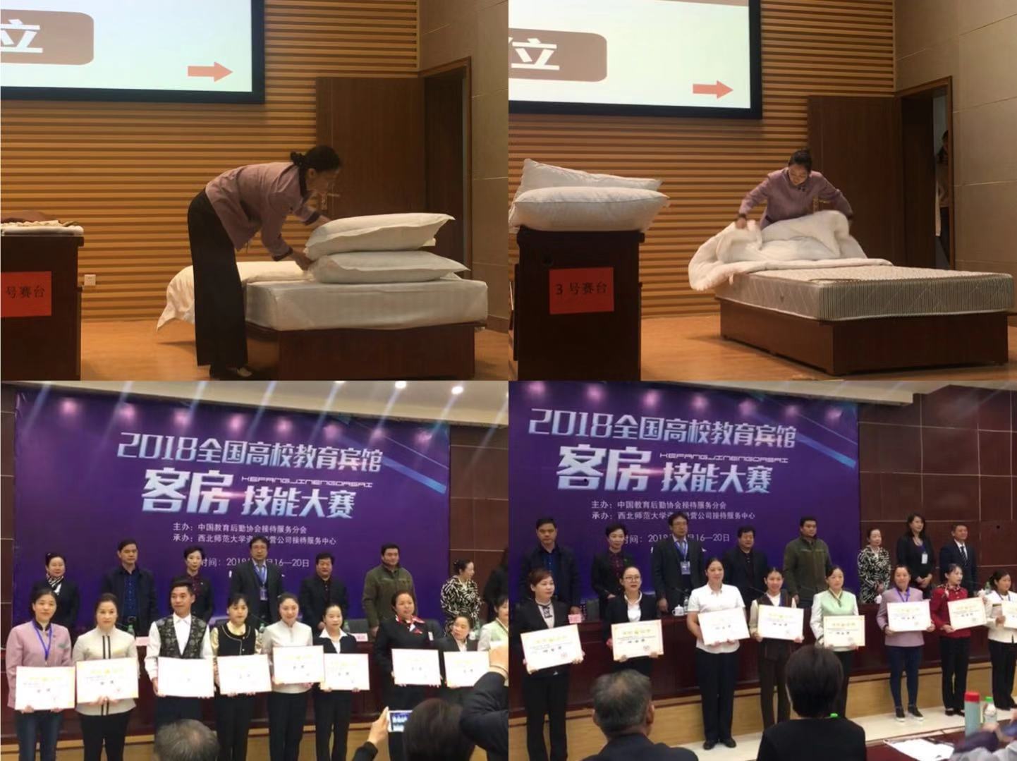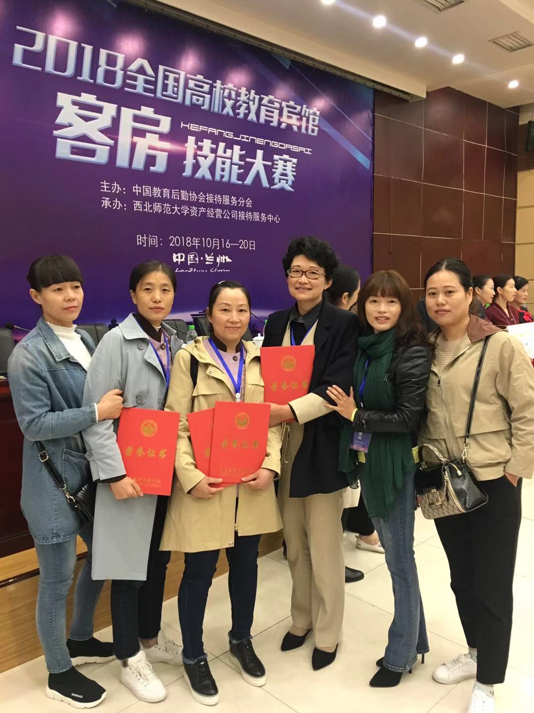10月16日至10月20日,由中国教育后勤协会接待服务分会主办的2018年全国教育宾馆客房服务技能大赛在西北师范大学举行。我校接待中心首次组织代表队参加比赛,获得大赛最高奖项“特金奖”1项、“金奖”1项和单项奖1项的佳绩,同时接待中心还获得“最佳组织奖”。