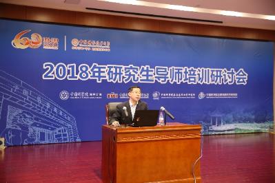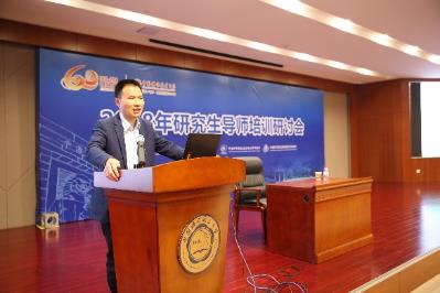 国家杰出青年基金获得者、中科院优秀研究生导师俞书宏教授作了题为《研究生培养的实践与体会》的报告。他分享了自己培养研究生的心得,向大家阐释了如何引导学生提升自学、思考、欣赏与明辨的能力,如何建立正确、良善的师生关系。他强调,在研究生培养过程中,导师应坚持因人施教,培养学生求真务实的精神,引导学生刻苦、向上、独立思考,培养学生的毅力以及坦然面对挫折和失败的能力。他认为,模范的力量可以产生无穷的动力,导师更应从严要求自己,在立德树人中做学生的表率。