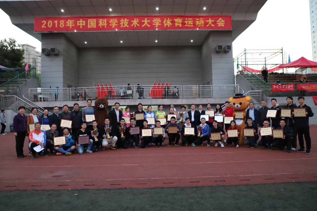 最终,获得本届体育运动大会学生团体总分第一名是物理学院代表队,二至六名分别为信息科学技术学院、生命科学学院、化学与材料科学学院、少年班学院和火灾科学国家重点实验室;校机关代表队获得教工组团体总分第一名,幼儿园、后勤联队、信息科学技术学院、化学与材料科学学院和生命科学学院分获二至六名。