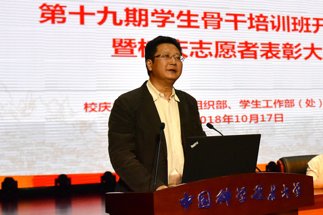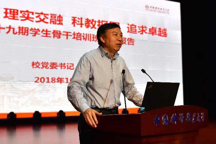 校党委书记舒歌群为学生骨干培训班学员作题为“红专并进、理实交融,科教报国、追求卓越”的主题报告。舒书记从科大的历史与现在和新时代、新青年两部分出发,对科大的校史校情、人才培养、学科建设、园区建设做了全面阐述,从爱国、励志、求真、力行四个方面对新时代的新青年提出要求。他希望学员们不忘初心、牢记使命,秉承“红专并进,理实交融”的校训,弘扬“科教报国,追求卓越”的精神,努力成长为德智体美劳全面发展的社会主义建设者和接班人。