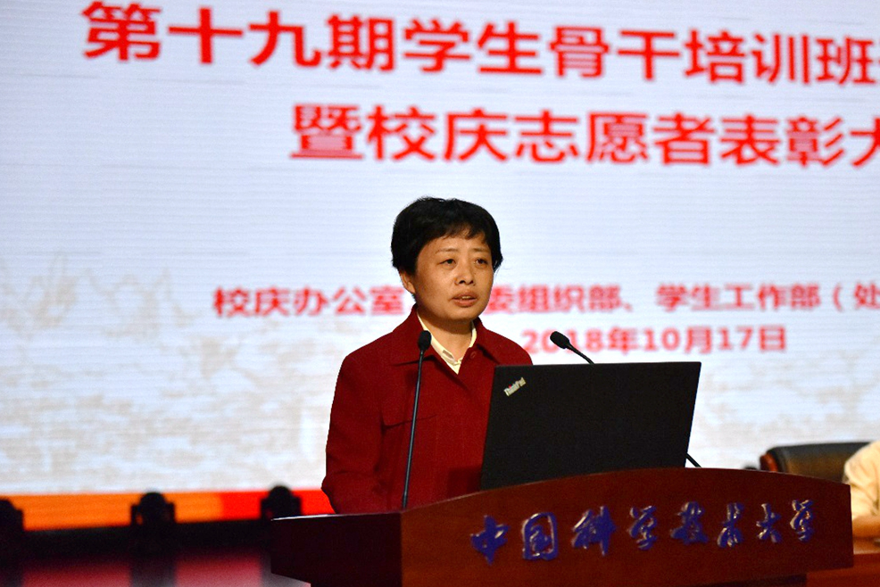 团省委副书记张敏在致辞中对培训班的开班表示热烈祝贺,向获得优秀校庆志愿者的老师和同学表示祝贺。她希望各位学员深化学习,坚定理想信念;知行合一,积极投身实践;练就高强本领,勇于担当作为。希望科大广大青年学子牢记紧跟党走的初心,牢记习近平总书记的谆谆教诲,不断用马克思主义理论丰富自己,积极投身实践锻炼自己,努力成长为又红又专、德才兼备、全面发展的新时代青年,担负起民族复兴的大任。