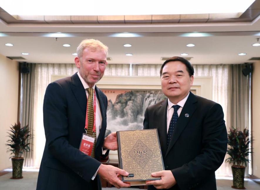 19日上午,教育创新暨中外大学校长论坛隆重举行。Victor van der Chijs校长出席论坛并作主旨报告。论坛期间,包信和校长与Victor van der Chijs校长简短会晤,并获赠校庆纪念品。