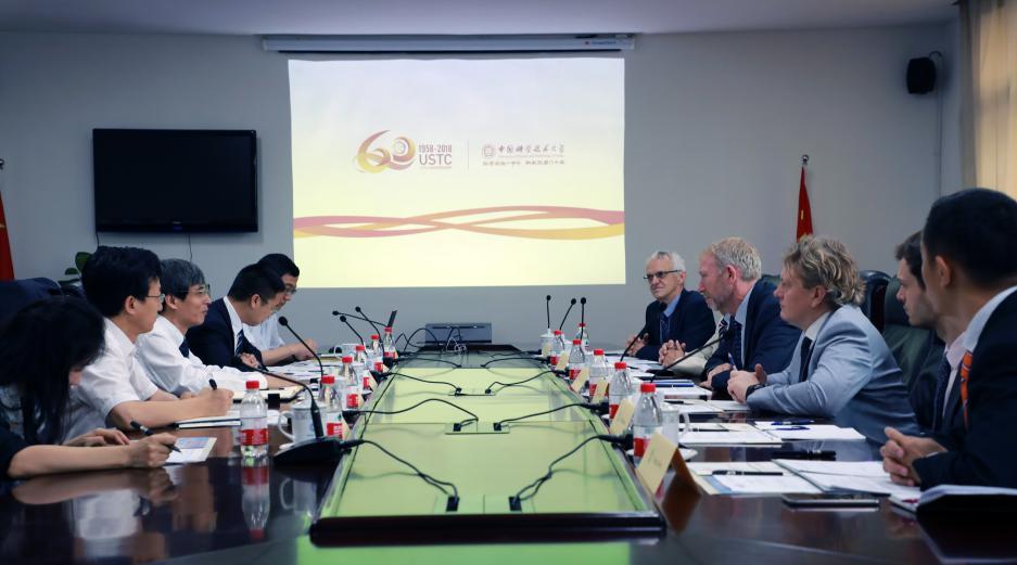 陈初升副校长首先代表学校欢迎特文特大学代表团的来访,随后简要介绍了我校的发展历史、学科优势等情况,并重点探讨了本科生培养模式,建议深入推进“3+2”学生联合培养项目,不断尝试新的合作模式。他指出,经过60年的发展,中国科大具备了良好的教育和研究平台,可以依托在基础科学研究方面的优势,不断拓展新的发展与合作领域,同时也非常期待与特文特大学在工科以及医学方面的合作。
