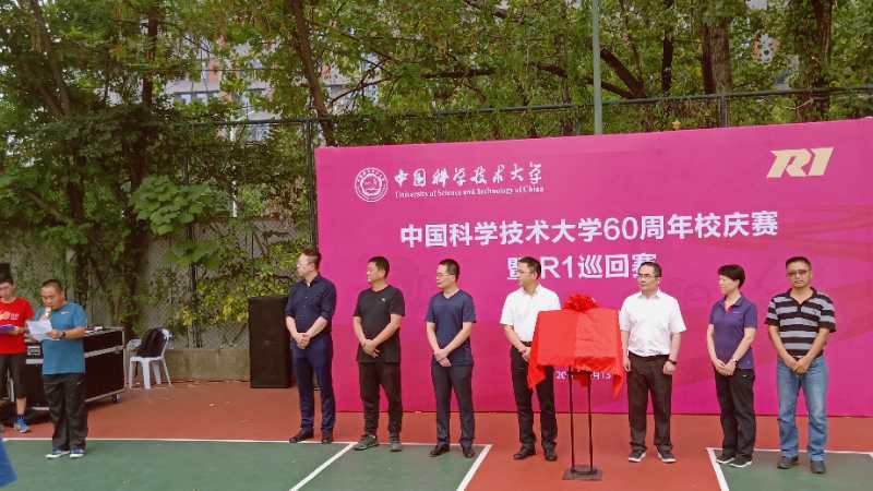 正值中国科学技术大学60岁校庆之际,为增添喜庆氛围,丰富我校师生全民健身活动内容,9月15日,由中国科学技术大学体育教学部、校工会、校团委与上海神起体育共同携手、精心策划和主办的“中国科学技术大学60周年校庆自行车赛暨R1巡回赛”在东区篮球场举行。开幕式上,进行了“中国大学生体育协会自行车分会中国科大训练基地”揭牌仪式。